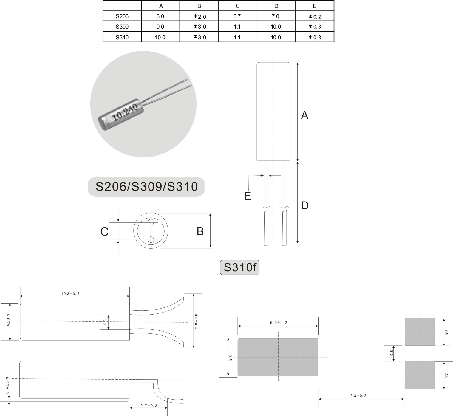 S310 | 10.0 | Ф3.0 | 1.1 | 10.0 | Ф0.3 |